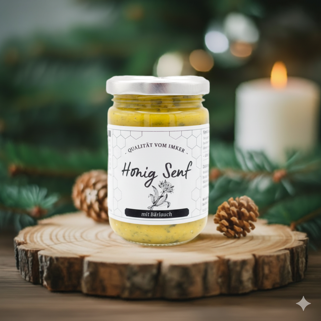 - Honig-Senf mit Bärlauch: Ein intensiver, herzhafter Geschmack von Bio Bärlauch vereint sich mit der Süße des Honigs – perfekt zu Fleischgerichten oder Käse.
